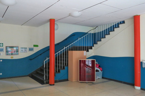 Nach dem Farbkonzept und den Entwürfen von Robert Kaller erhält die öffentliche Grundschule in der Dortmunder Innenstadt eine neue 'lichtoffene Farbigkeit'.