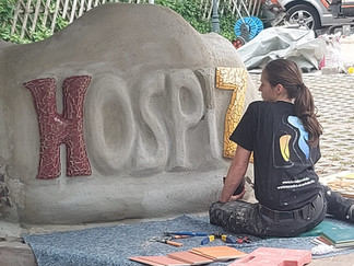 Die plastischen Kunstwerke runden die künstlerische Gestaltung des Hospiz Ipek ab, an denen Robert Kaller mit seinem Team und Student*innen der Mosaikbauschule Dortmund seit 2016 arbeitet, s. auch: 'Begleitung der Seele'
